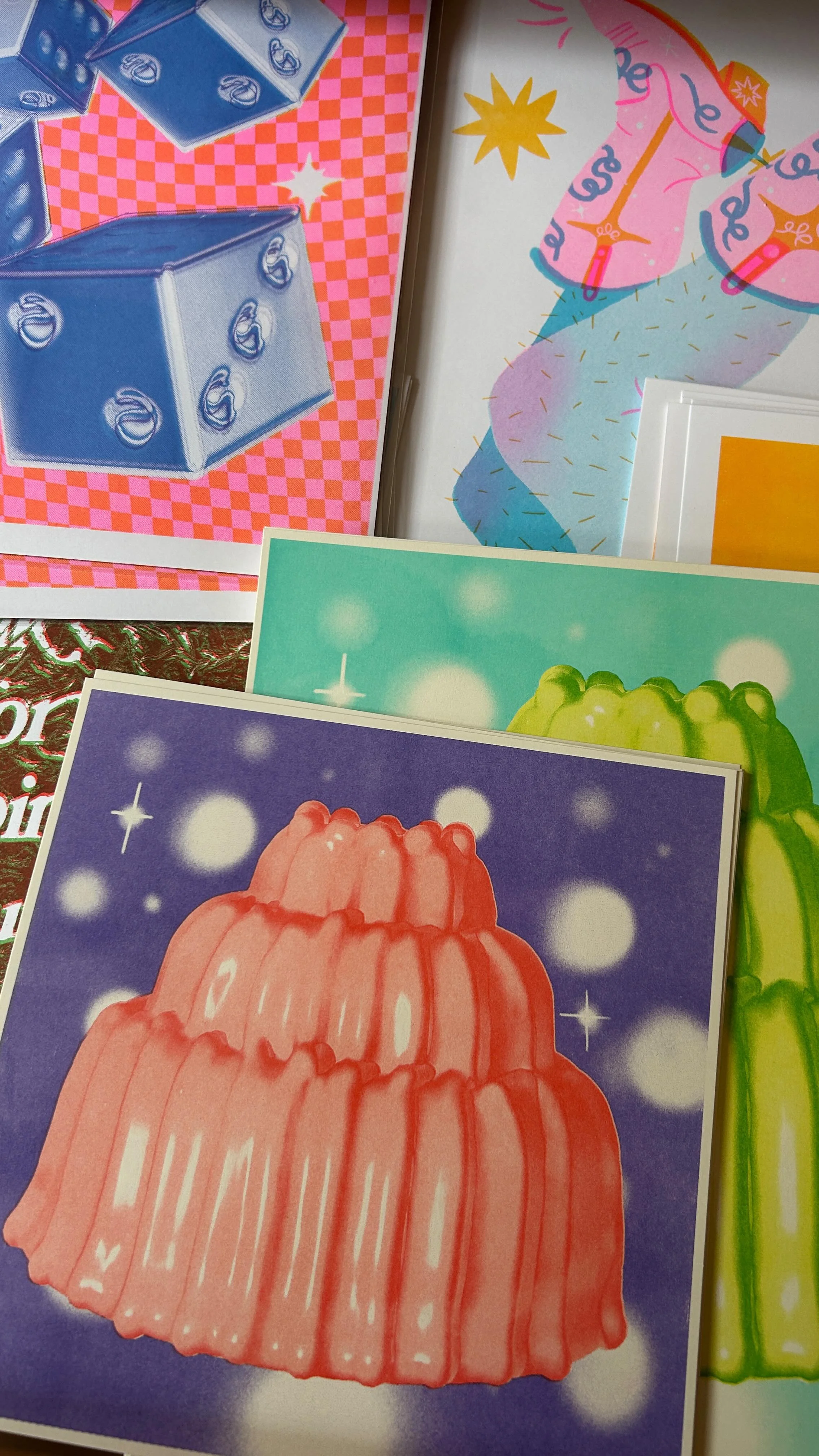 NEW! Shop art prints, stickers and cards for your market, gift shop, corner store, whatever galore! Stock your space with vibrant colors, illustrations and riso printed magic β¨